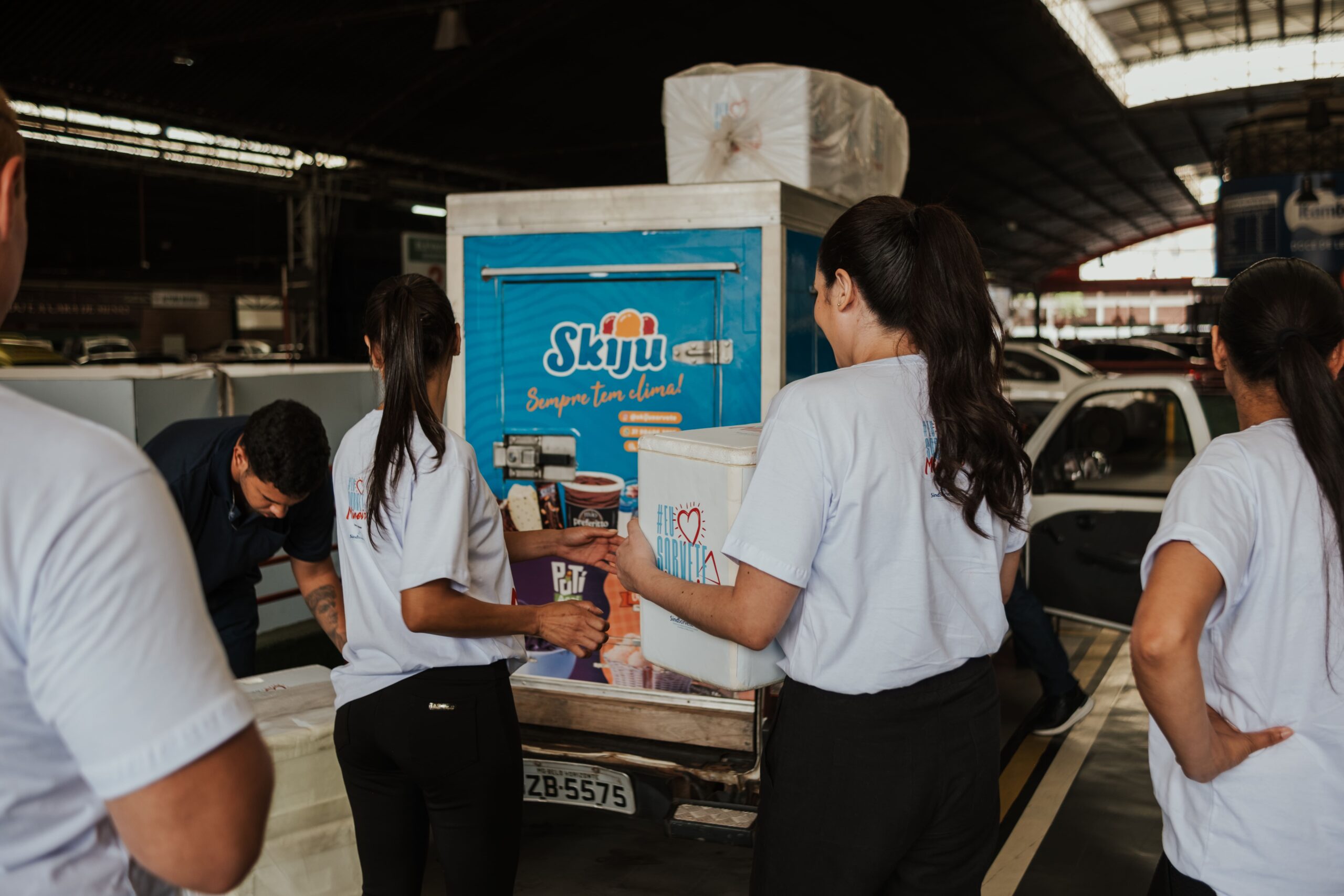 Ao lado dos parceiros Skiju, Galato, Sol e Neve, Gellak e Açaí Paneiro, realizamos a entrega de picolés ao público, no Mercado Central e no SENAI-ARG, levando sabor, frescor e alegria para visitantes, trabalhadores e estudantes.